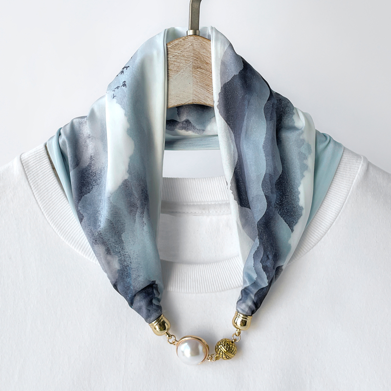 流行 时尚 磁扣珍珠项链小丝巾女夏季 懒人护颈带围脖子锁骨搭配衬衫