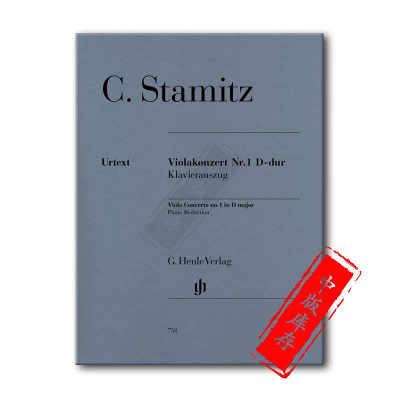 Viola 中提琴协奏曲 乐谱书 斯塔米茨 Concerto major 带华彩 D大调 HN758 亨乐原版 no1 Stamitz