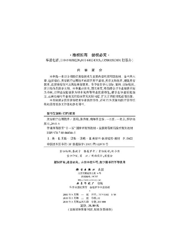 美容医疗应用技术聂莉 鲍海平编 张秀丽