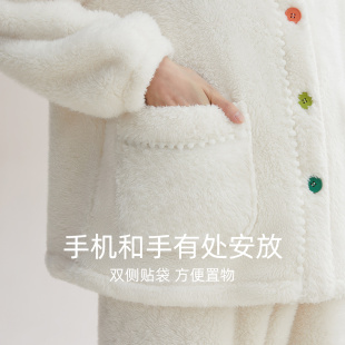 家居服套装 芬腾蓬蓬绒情侣睡衣女秋冬季 保暖抗静电珊瑚绒青年男士