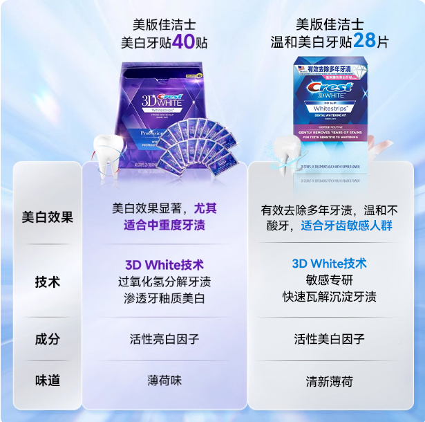 万宁美版 佳洁士牙贴温和清洁去黄洁白牙齿牙贴40贴3d炫白亮白