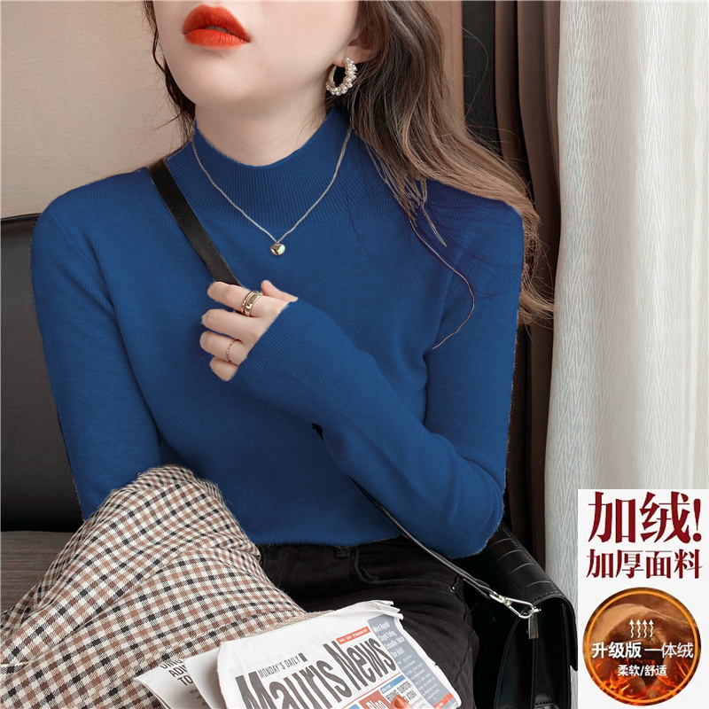 女内搭半高领秋冬上衣打底衫 一体绒针织衫 潮 大码 加绒加厚毛衣长袖