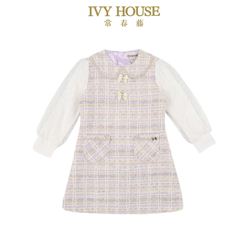 甜美公主裙子礼服裙 女孩长袖 英氏女童娃娃领连衣裙2025新款 春秋款