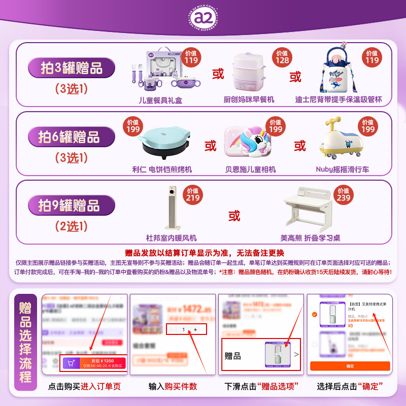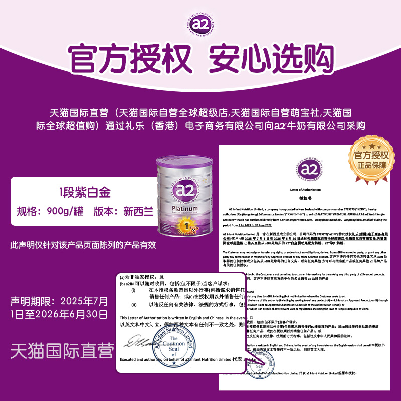 6月900g a2奶粉一段新紫白金婴幼儿1段0 3罐 自营