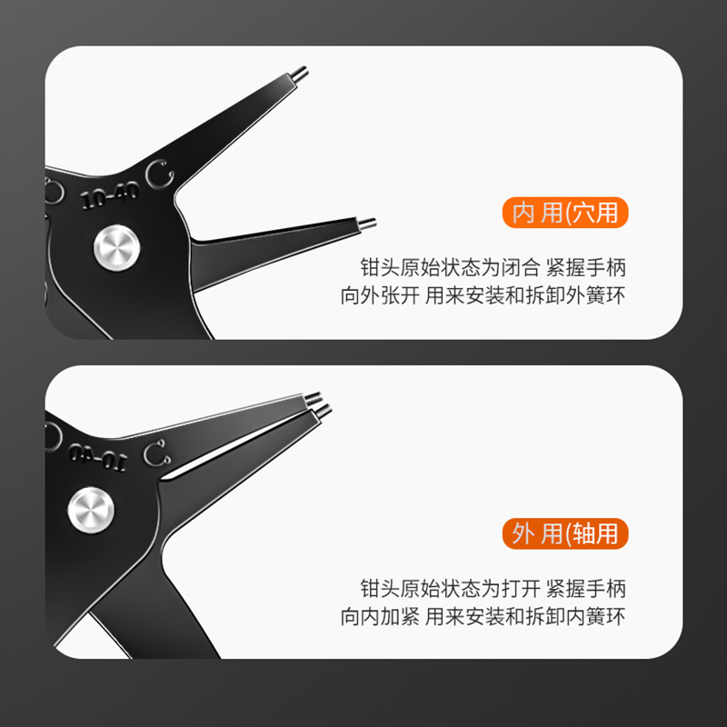 卡簧钳内外两用弹簧黄卡环钳子工业级拆卸挡圈多功能二合一扩张钳