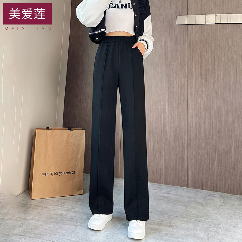 加绒休闲长裤 冬季 运动裤 显瘦大码 阔腿裤 胖mm直筒裤 女春秋新款