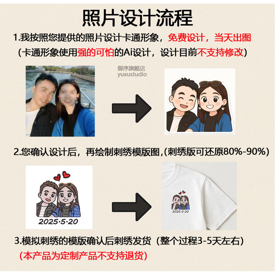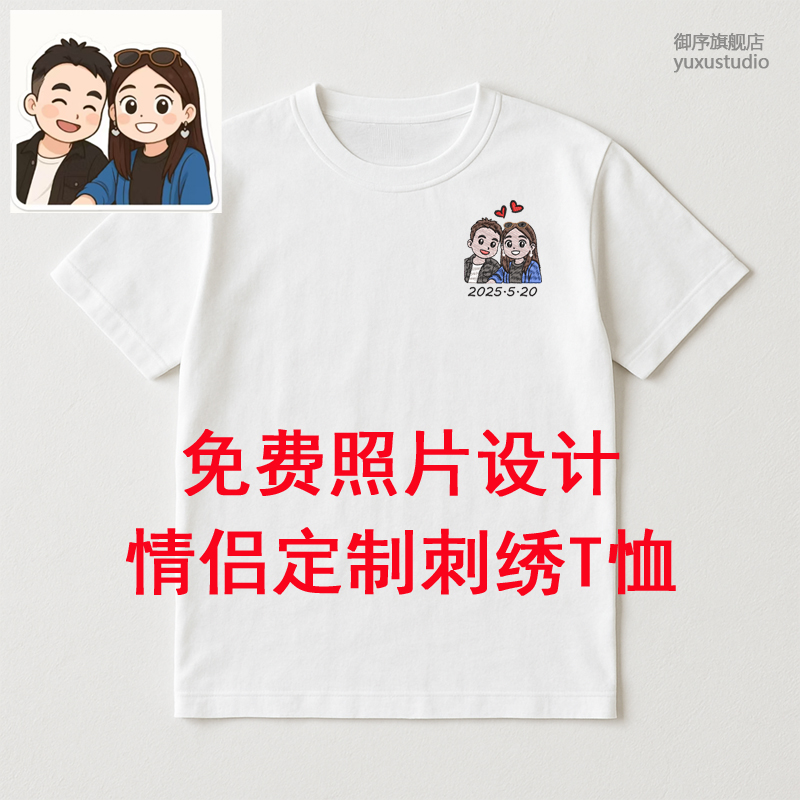 情侣装 T恤结婚领证登记拍人物照片设计刺绣七夕创意礼物 纯棉短袖