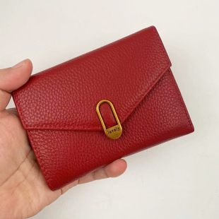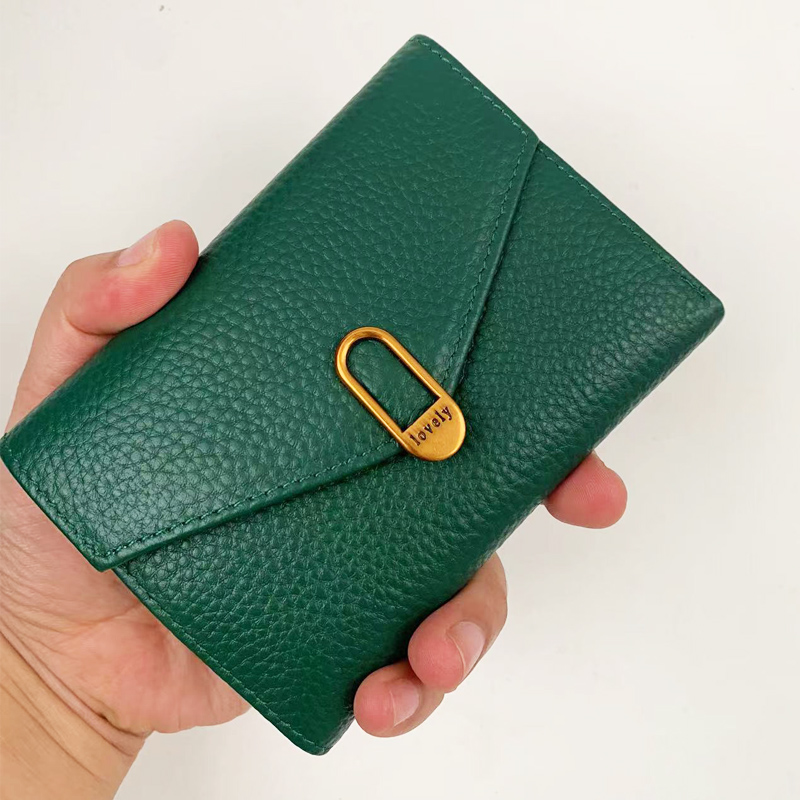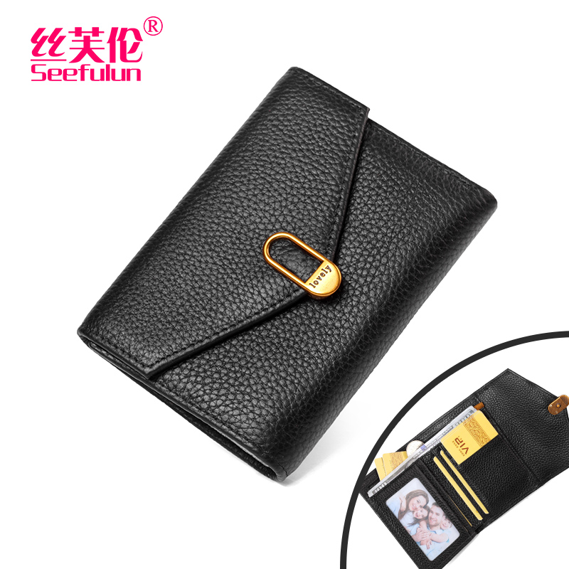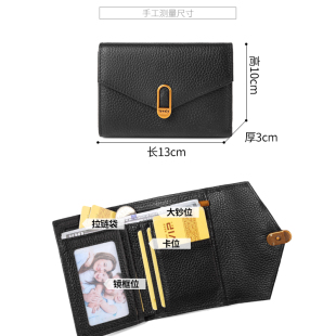 稻草人钱包女士新款 牛皮简约钱夹零钱包女生卡包 真皮小众钱夹女式