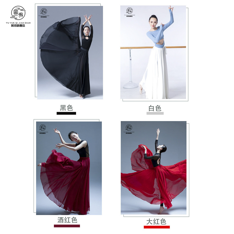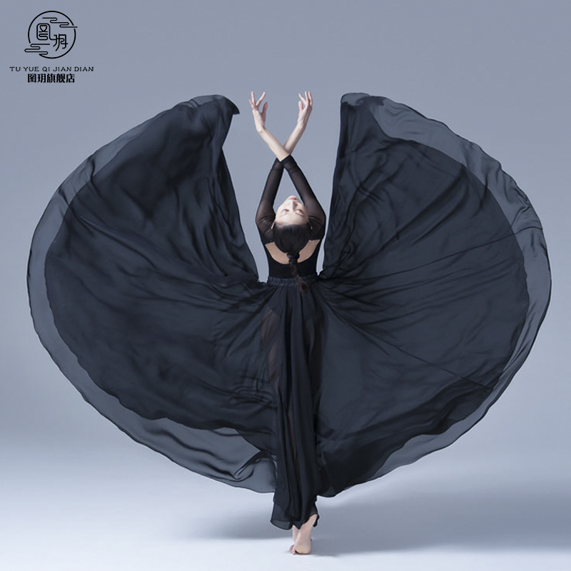 黑色古典舞大摆裙渡红尘720度半身长现代舞演出练功纱裙写真拍照