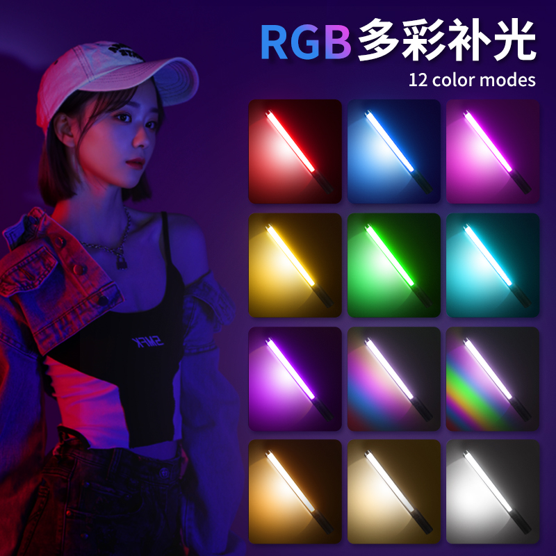 锐富图RGB摄影棒灯手持打光彩色全彩便携冰灯外拍视频直播美颜人像夜景氛围室内发丝下巴颈纹拍照拍摄补光灯
