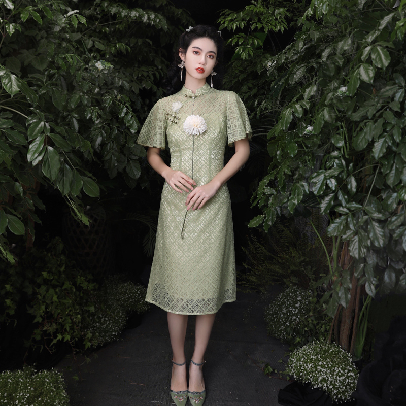 少女复古民国风气质高端长款 年轻款 老上海性感优雅 旗袍改良版 新式