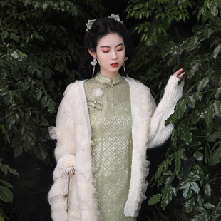 年轻款 2025年开衫 改良版 披肩外搭斗篷秋款 女外套 白色配旗袍 冬季