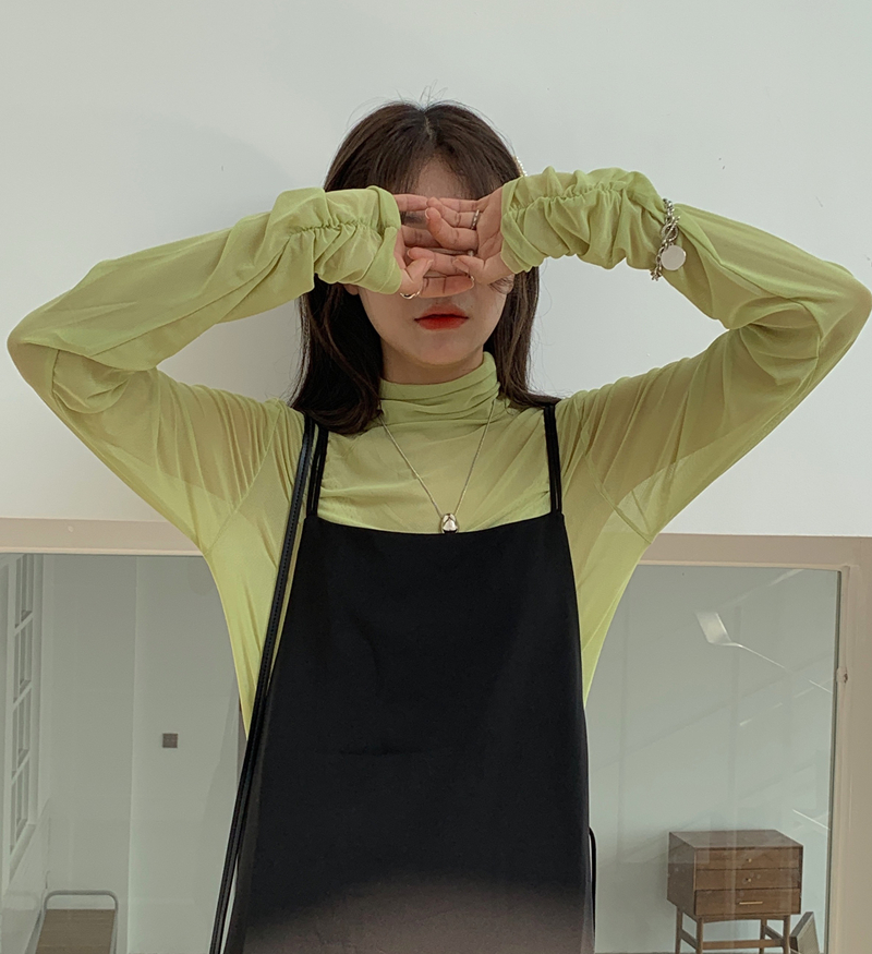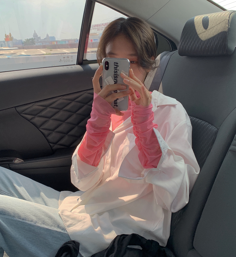 网纱防晒t恤内搭纯色上衣薄款 春秋糖果色冰丝打底衫 女长袖