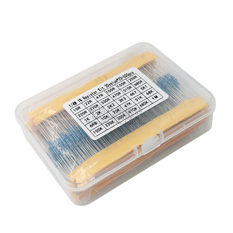 30种常用直插五色环电阻包 盒装 精度1% 4w金属膜电阻包 共600只
