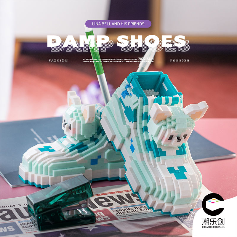 潮乐创微小颗粒玲娜积木鞋 玩具情人节生日礼物 贝儿星黛笔筒露拼装