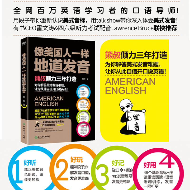 英语音标发音教材英语入门自学零基础巴朗美式 熊叔著美式 像美国人一样地道发音 英语语音语调速成书籍 包邮