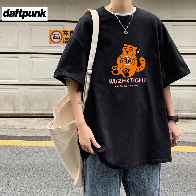 宽松嘻哈高街半袖 t恤男生夏季 体恤 复古潮牌卡通字母印花短袖 美式