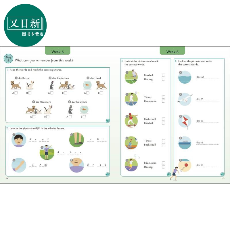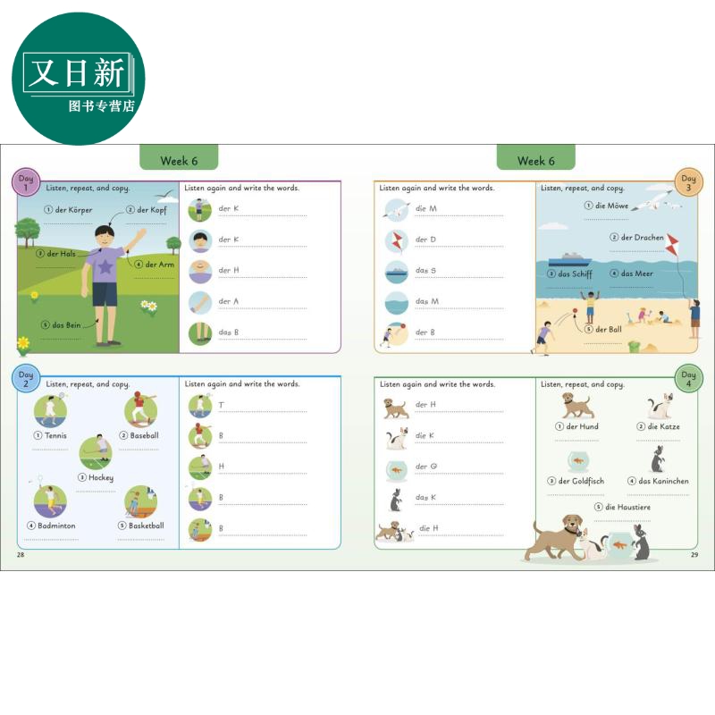 一天学5个单词 for Junior 预售 青少版 英文原版 人人学德语 Everyone Day 练习学习 语言词汇 Words German