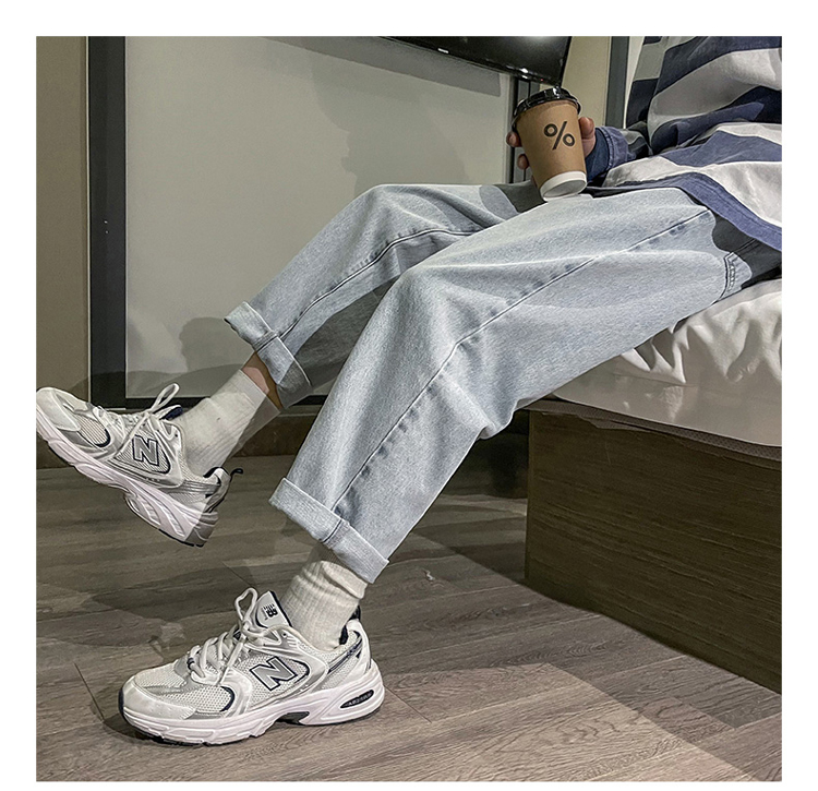 男潮牌2022年春季 港风九分长裤 高街裤 男士 子直筒宽松阔腿裤 牛仔裤