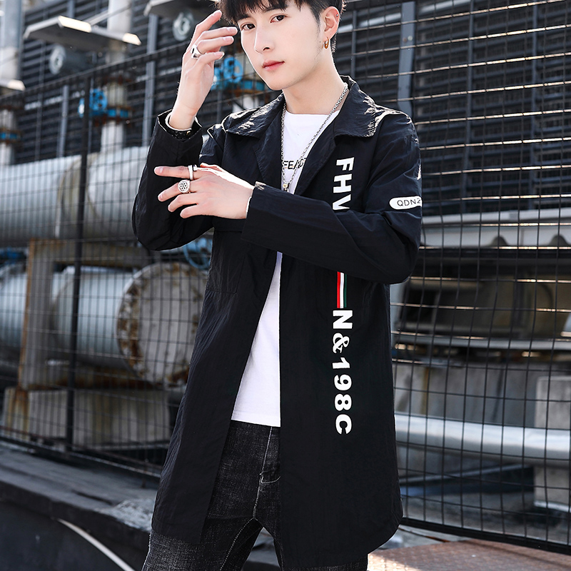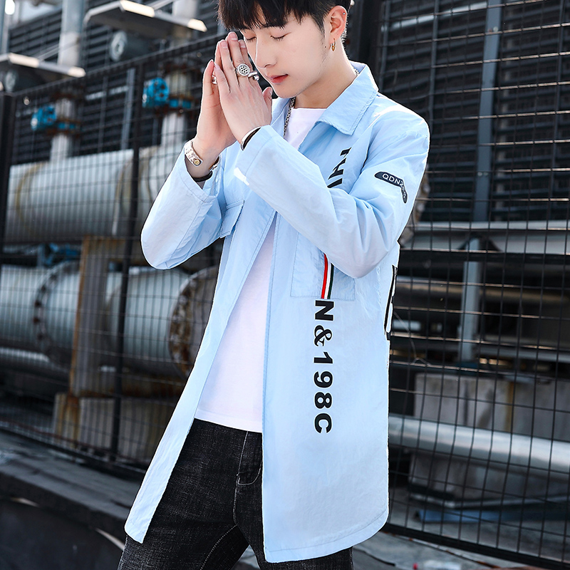 潮 透气休闲潮流百搭学生帅气防晒服风衣中长款 春夏季 外套男薄款