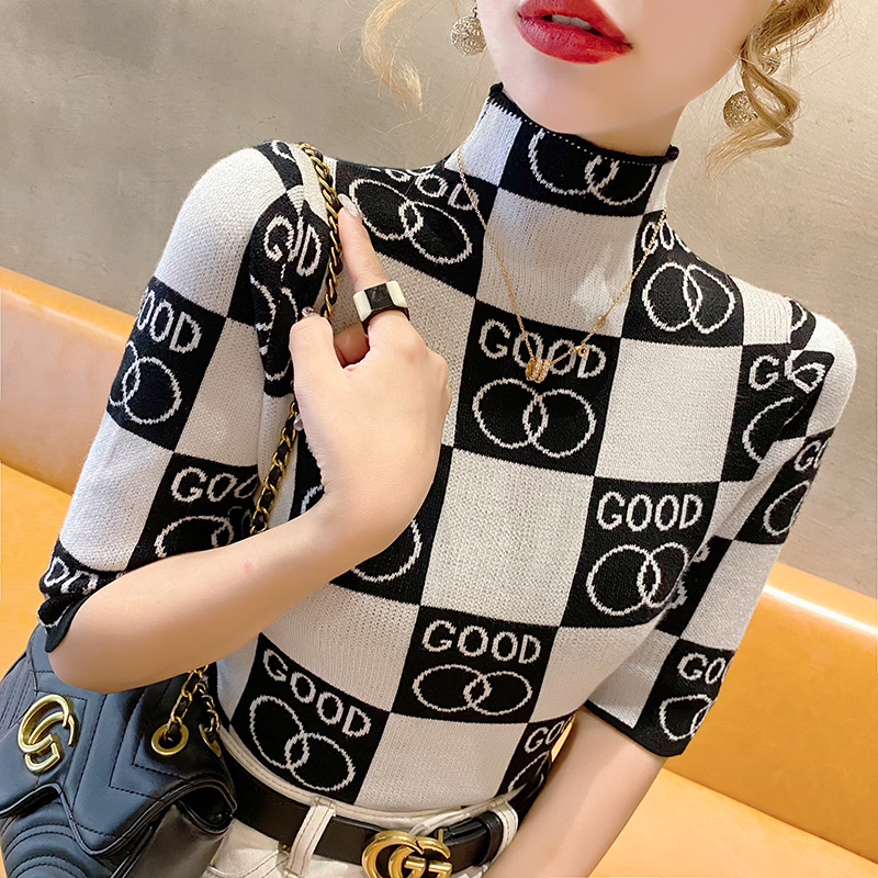 女内搭毛衣长袖 阔色灰色半高领针织衫 新款 2025秋冬季 上衣黑 打底衫