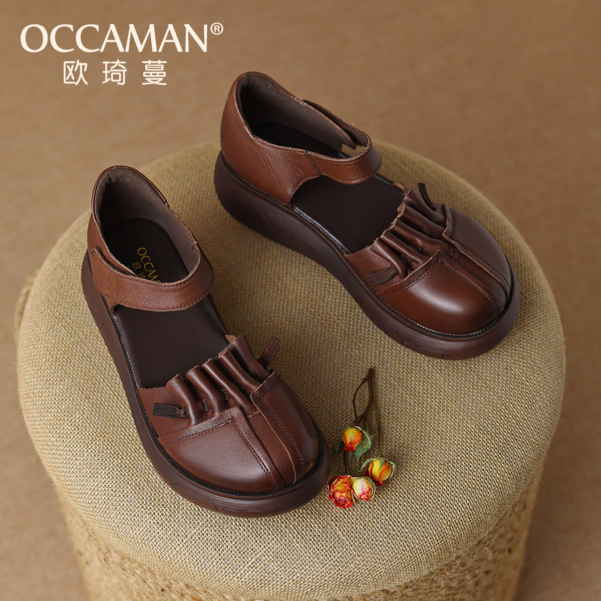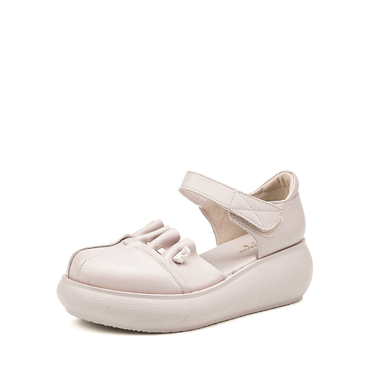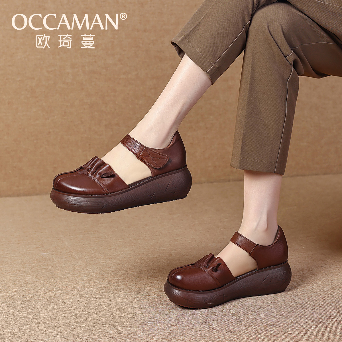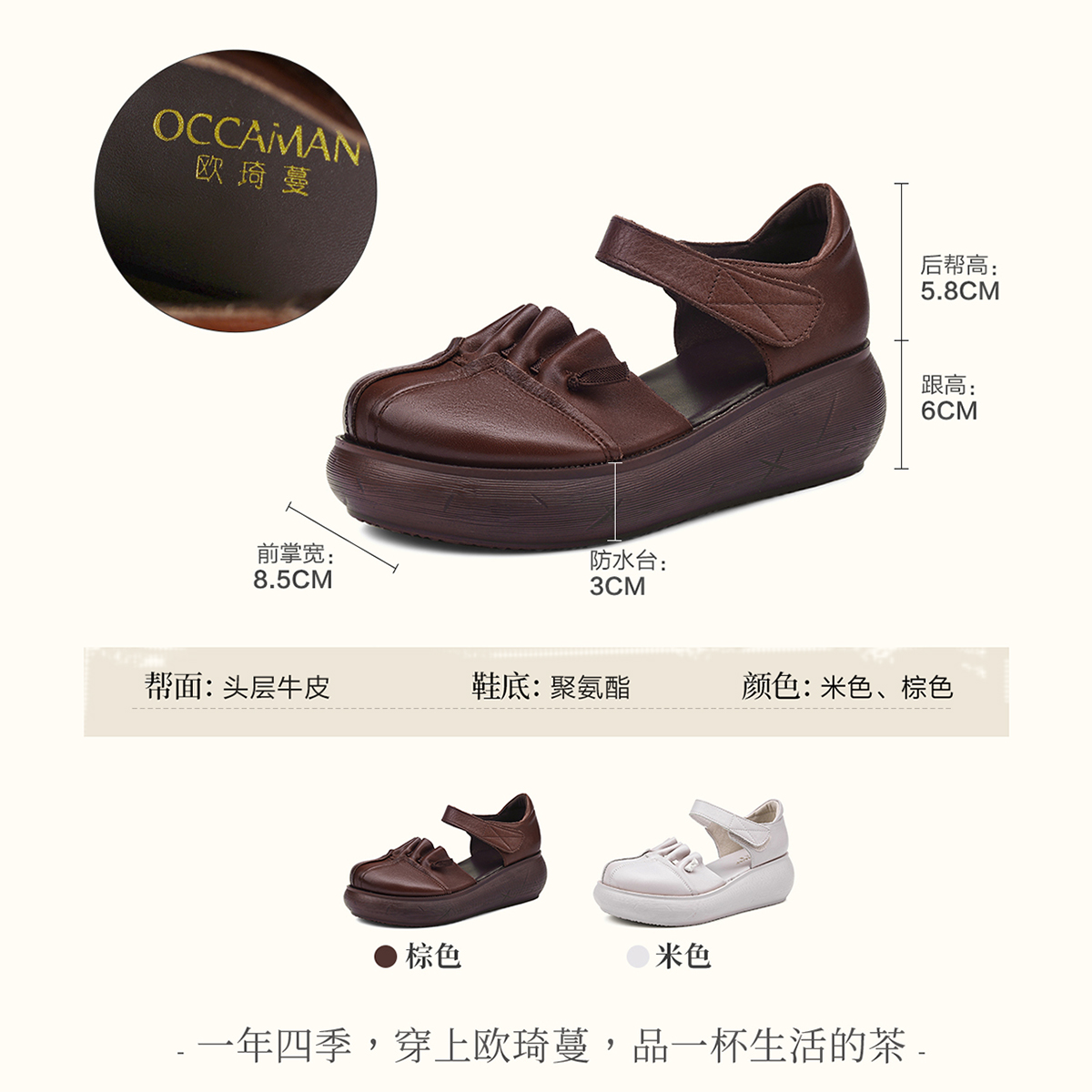 复古真皮软底舒适包头松糕坡跟鞋 高跟凉鞋 女鞋 新款 女厚底2025夏季