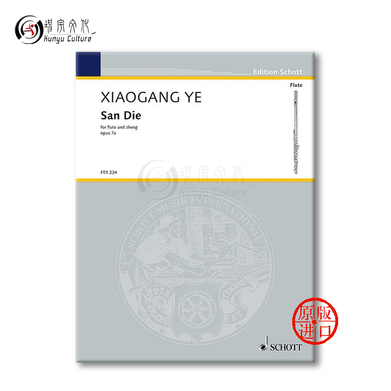 德国朔特原版 三叠 长笛与筝 and FTR224 叶小纲 flute 进口乐谱书 op7a Die San Xiaogang zheng for