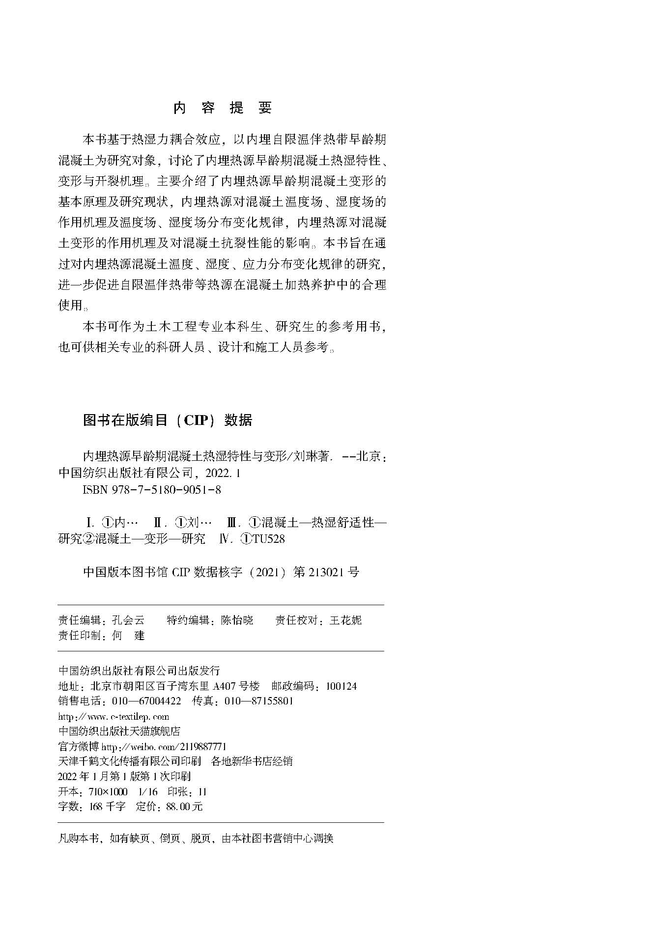 变形与开裂机理 讨论其热湿特性 专业图书 以内埋自限温伴热带早龄期混凝土为研究对象 内埋热源早龄期混凝土热湿特性与变形