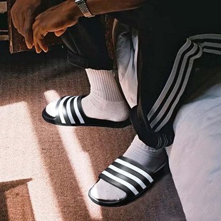 休闲鞋 男女运动凉鞋 Adidas阿迪达斯拖鞋 三条纹凉拖F35543 自营