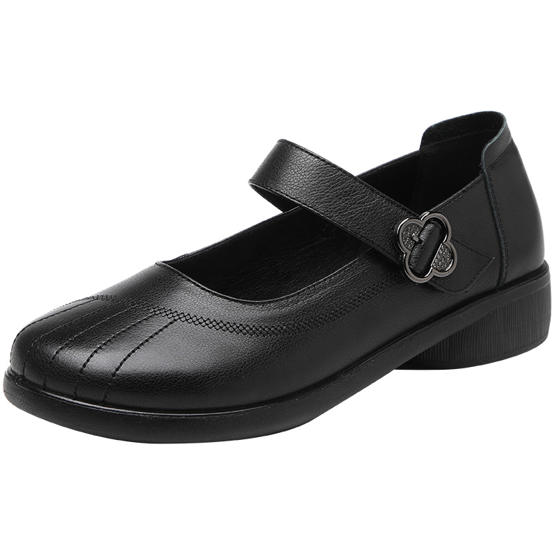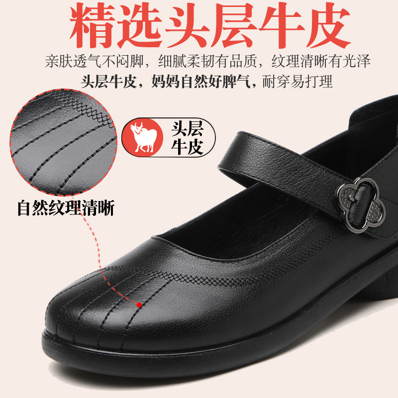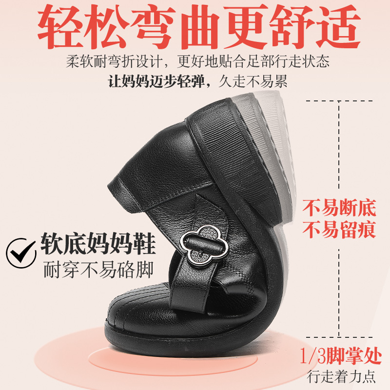 女鞋 中年防滑舒适大码 清仓 平底浅口魔术贴单鞋 旺奈真皮软底妈妈鞋