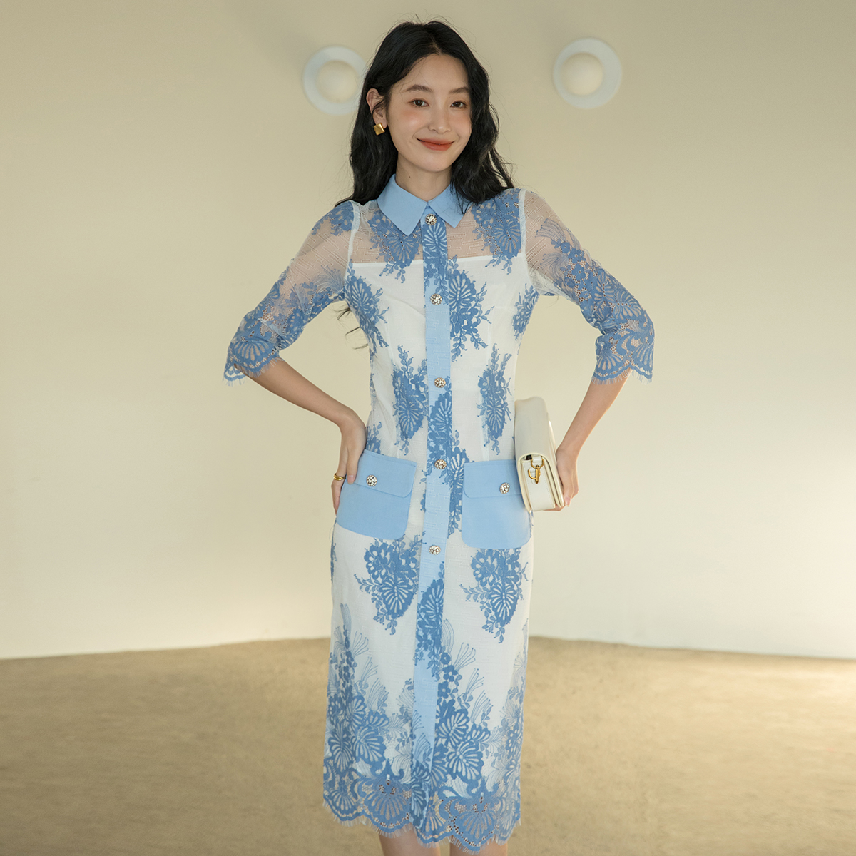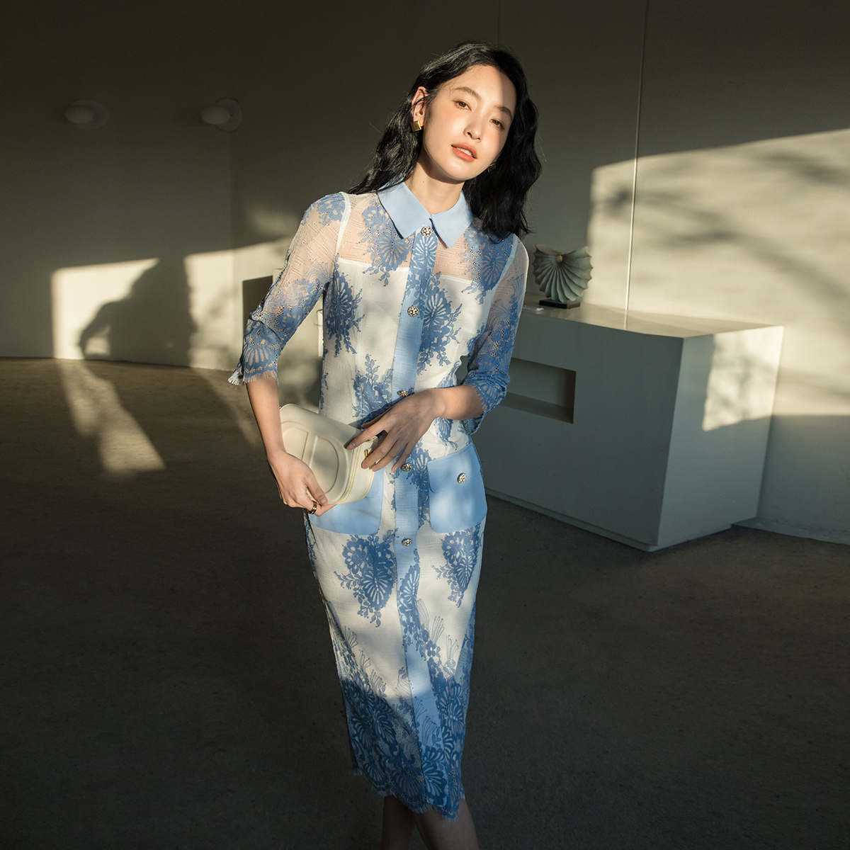 艺彩鎏光珂莱蒂尔通勤气质淑女H型圆领两件套连衣裙 免定金