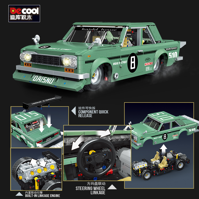 迪库中国积木日产达特桑复古经典 潮酷科技车模型是圣诞节礼物收藏