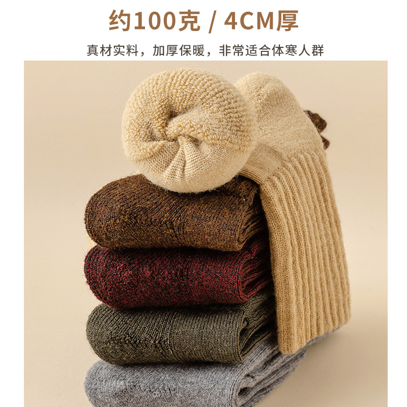 羊毛袜子男士 保暖中筒袜毛巾底松口加绒毛圈抗寒冬天长袜 加厚冬季