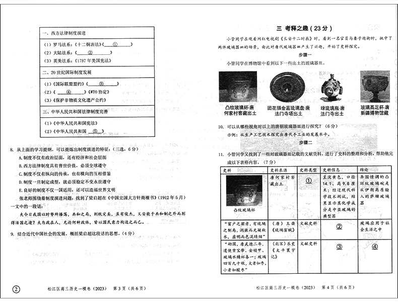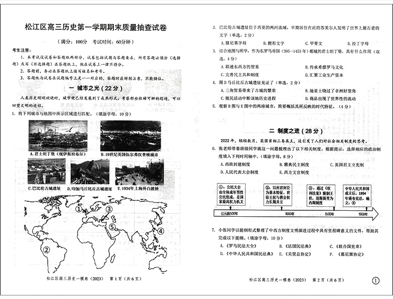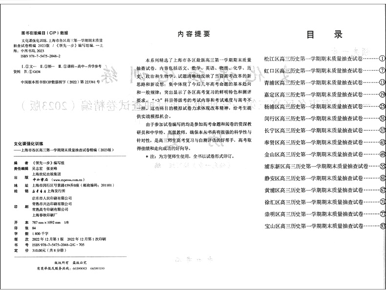 领先一步 文化课强化训练历史一模卷 历史 仅试卷 上海市各区高三期末质量抽查高中模拟试卷 上海高考历史一模卷 2023年版