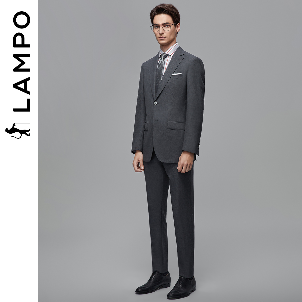 商务西服套装 蓝豹男西装 LAMPO 上衣羊毛中灰西服外套 羊毛