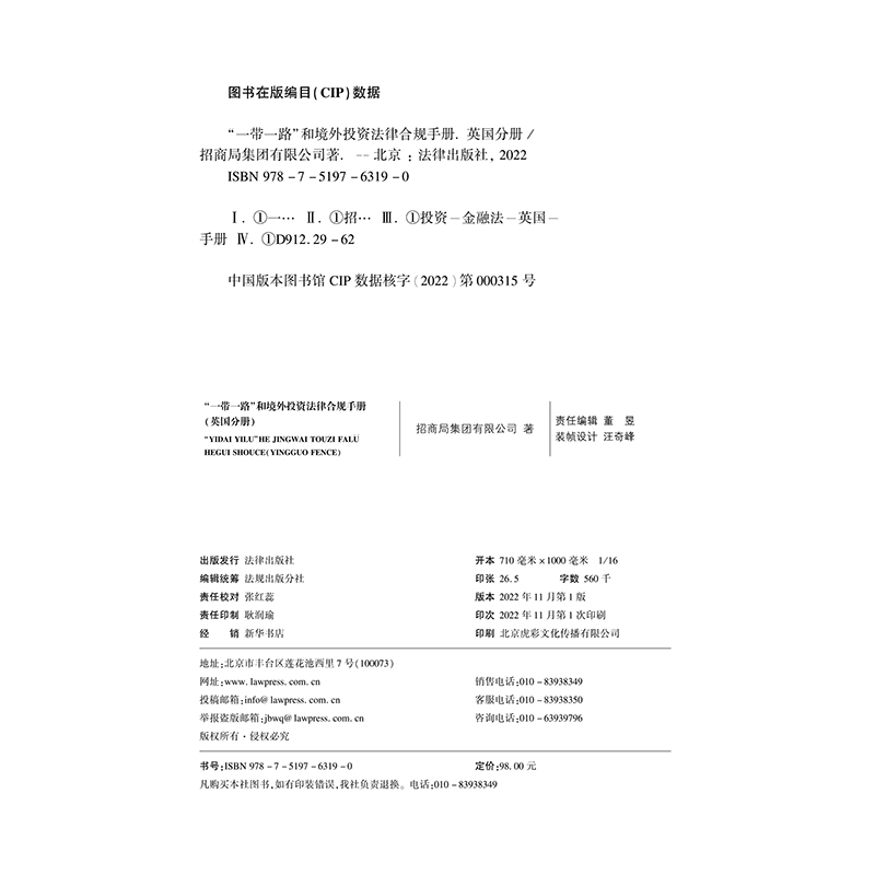 2022新书 法律出版 一带一路 英国分册 社9787519763190 和境外投资法律合规手册 正版