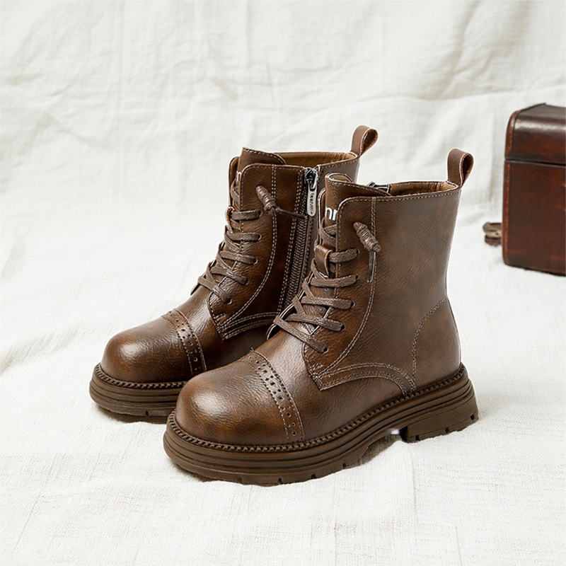 天美意童鞋 女童马丁靴公主小皮靴女宝加绒大童雪地靴 2025秋冬新款