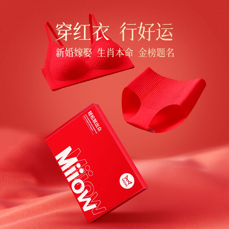 猫人大红色内衣女聚拢小胸结婚性感蛇年本命年内衣套装 女文胸礼盒