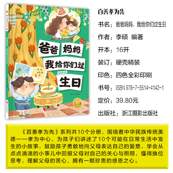 绘本3 孝顺绘本硬壳硬皮精装 6岁温情感恩绘本幼儿园大中小班亲子阅读故事不注音图多字少 百善孝为先 爸爸妈妈我给你们过生日