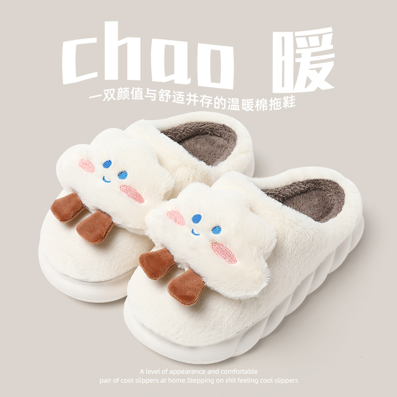 外穿 室内家居家用可爱毛绒保暖厚底情侣拖鞋 云朵棉拖鞋 女士秋冬季