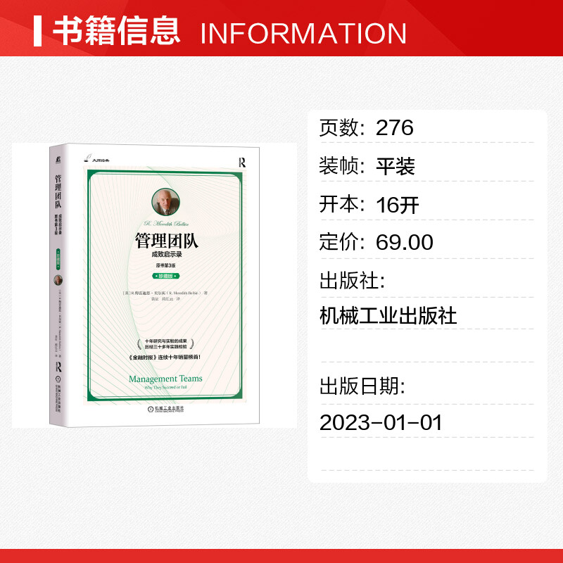 梅雷迪思贝尔宾鞭策者执行者完成者外交家协调者凝聚者智多星审议员专家新华书店正版 管理团队 珍藏版 原书第3版 图书籍 成败启示录