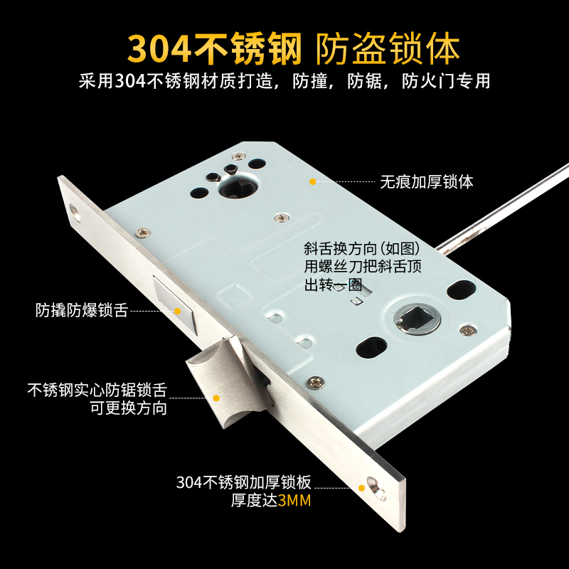 304不锈钢防盗门锁体机械单活双活双快入户大门静音指纹锁通用型