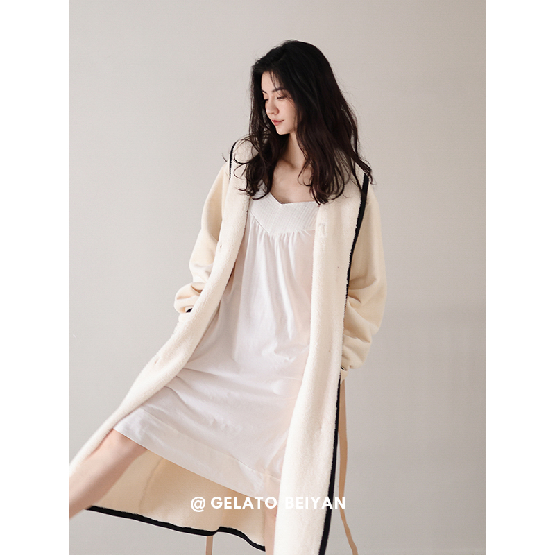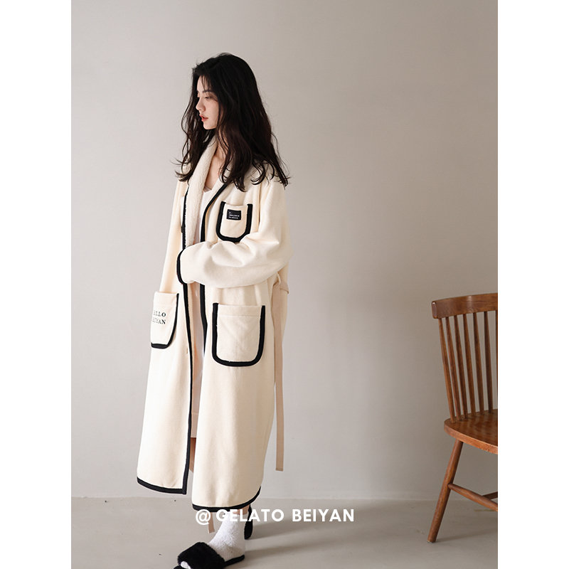 贝妍珊瑚绒睡袍冬季 浴袍双层复合加绒加厚高级感家居服 睡衣女长款
