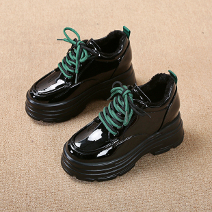 秋季 女英伦风加绒棉鞋 松糕休闲2025新款 厚底乐福鞋 冬季 内增高女鞋