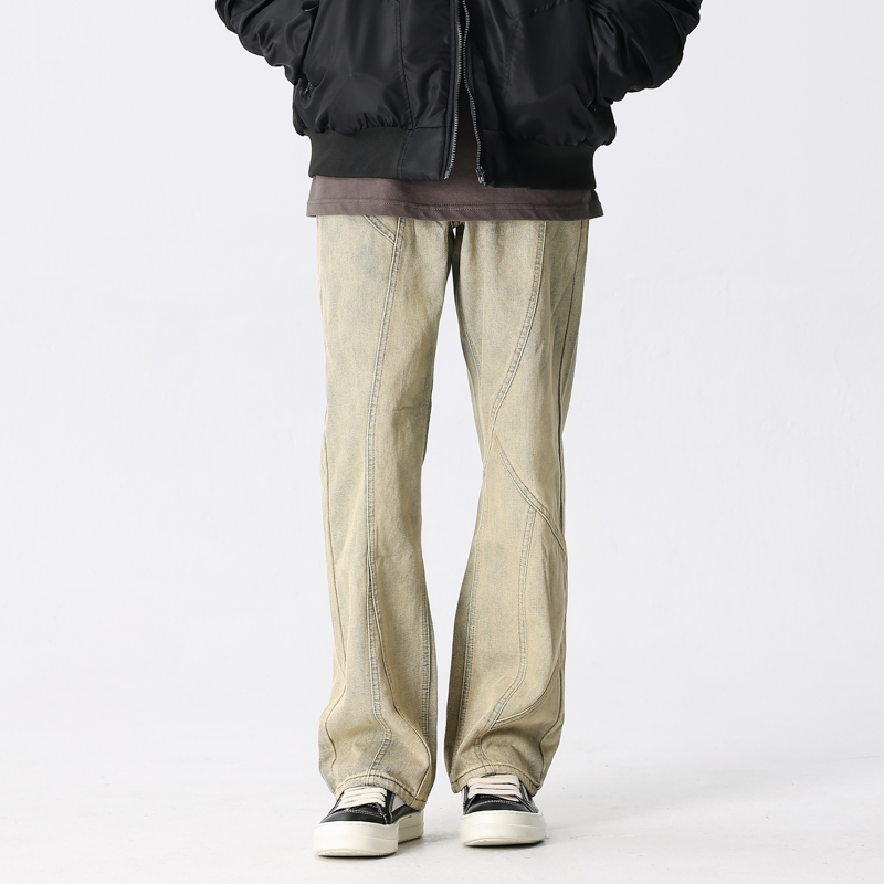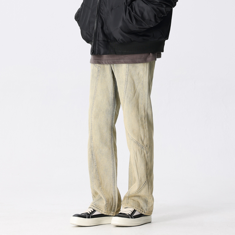 牛仔裤 复古做旧阔腿长裤 2025年秋季 宽松直筒牛仔裤 新款 热风男士