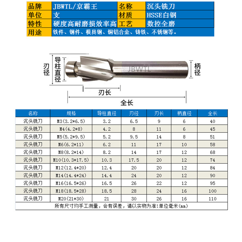 带导柱直柄平底锪钻沉头铣刀螺丝螺栓超硬白钢沉头刀沉孔刀M5M6M8