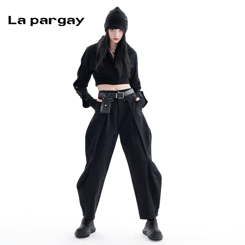 黑色个性 女式 时尚 百搭长款 子 纳帕佳甜酷高腰休闲裤 裤 2024秋冬新款
