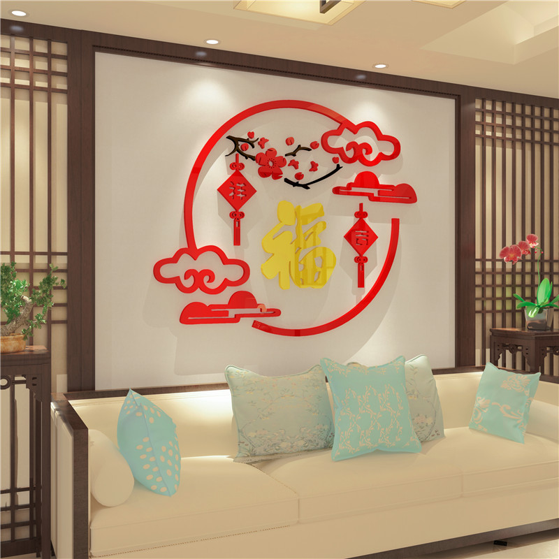 福字玄关入户客厅沙发电视机背景墙装 饰3d立体墙纸贴画亚克力自粘