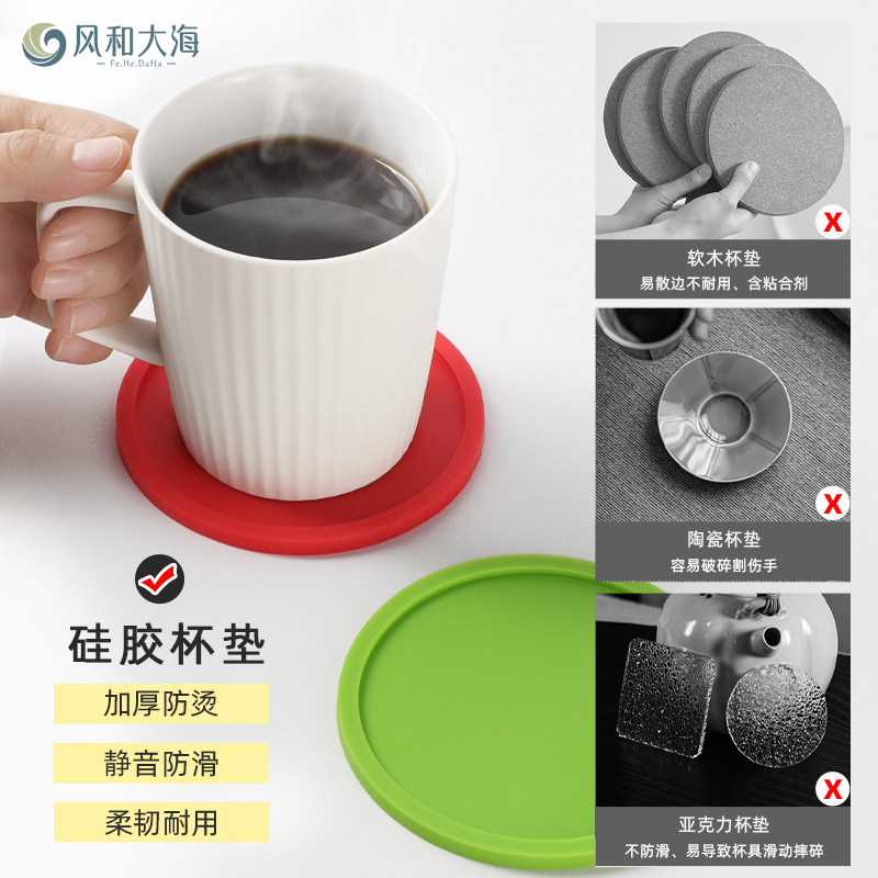 加厚茶杯咖啡杯垫创意简约圆形软硅胶杯垫防滑防漏水杯隔热餐桌垫
