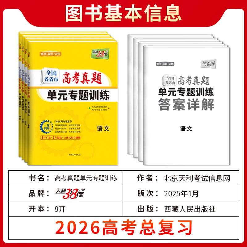 2026高考天利38套全国各省市高考真题单元 专题训练高三一轮总复习考点真题分类专项训练语文数学英语物理化学生物政治历史地理题